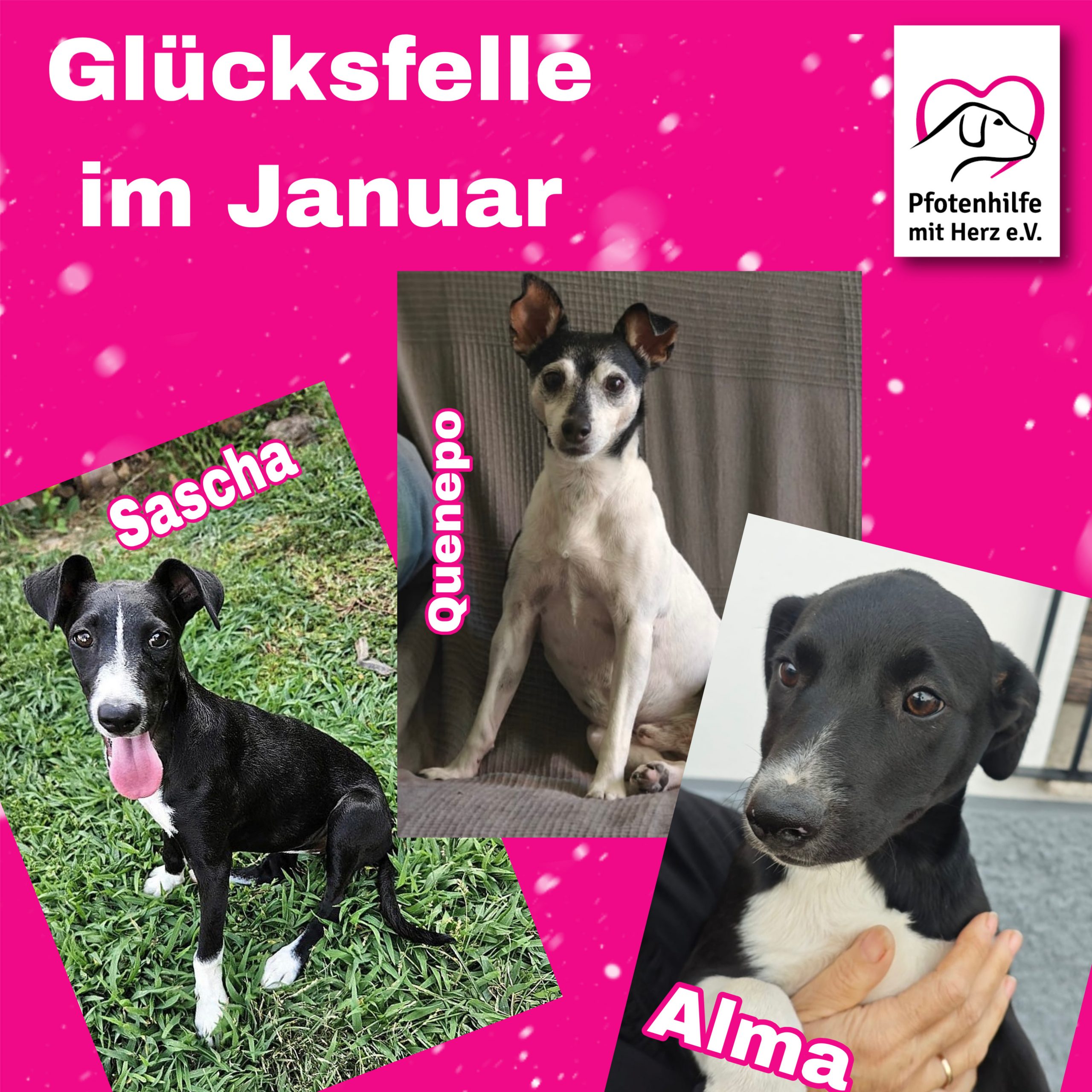 Der Dezember hielt gleich doppelt schönes Glück bereit: Cleo und Bowie durften in ihr neues Zuhause ziehen und genießen nun ihr Leben voller Geborgenheit, Liebe und gemeinsamer Abenteuer. Zwei wunderbare Seelen, die endlich ankommen durften. Bereits im November machte Junco sich auf den Weg – auch er hat sein Für-immer-Zuhause gefunden und zeigt jeden Tag aufs Neue, wie glücklich ein Hund sein kann, wenn er geliebt wird. Diese Glücksfelle erinnern uns daran, warum wir unsere Arbeit mit so viel Herzblut machen. Danke an alle, die Adoptionen möglich machen!