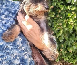 VERHALTEN: Zaria ist eine ganz liebe Hündin, wenn man sie erst einmal kennt, braucht aber etwas Zeit, um sich einzugewöhnen. Sie ist eine sehr unterwürfige Hündin mit einer schweren Vergangenheit, die sie vergisst, sobald sie Vertrauen gefasst hat. Dann entdeckt man, was für ein kleiner Schatz sie ist: Sie will immer auf dem Schoß sitzen und ist so agil wie eine Katze. Sie liebt es, sich den Bauch kraulen zu lassen. Auch Fressen liebt sie über alles, und wenn es leckeres Futter ist, ist sie ganz verrückt danach.