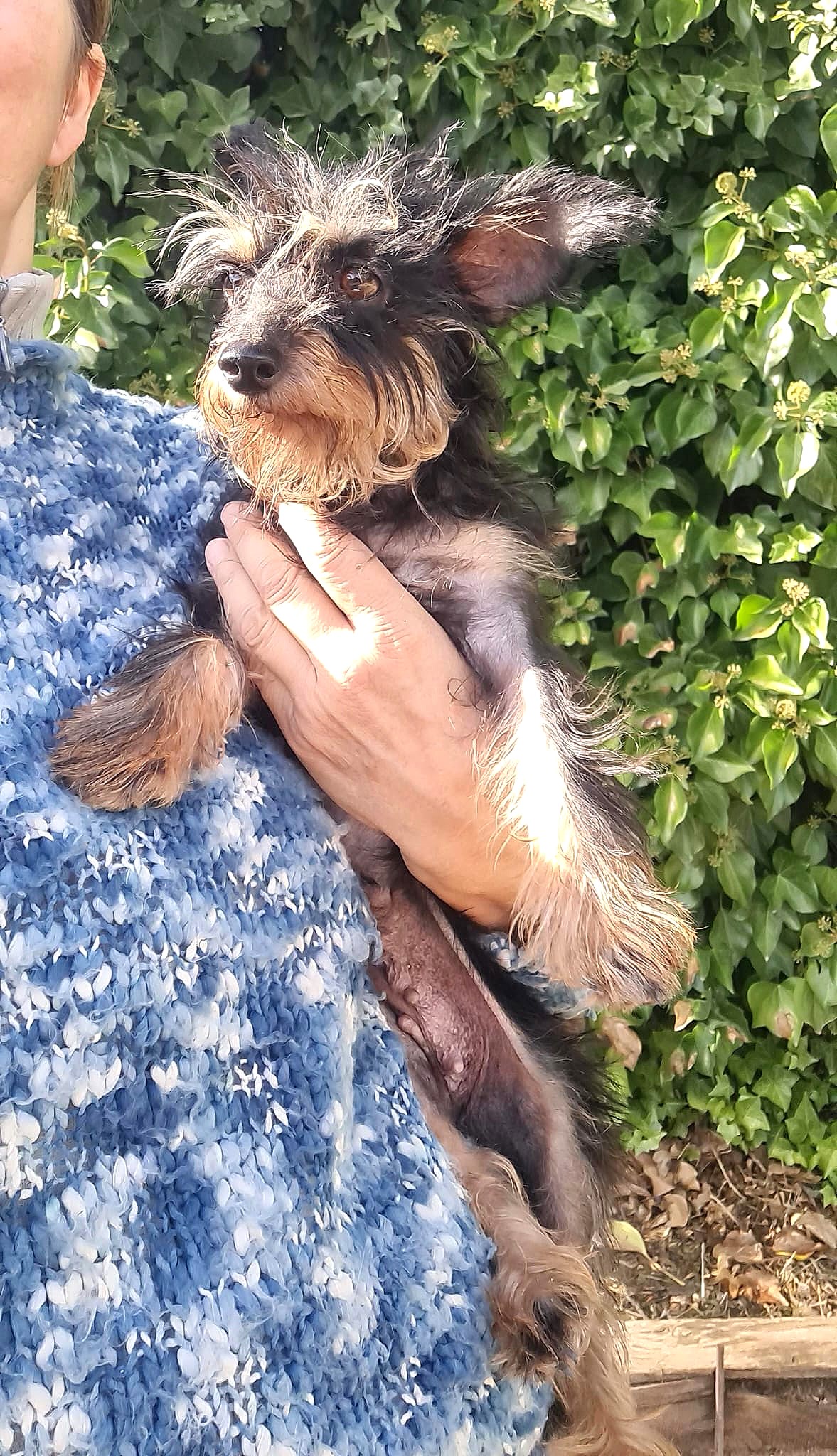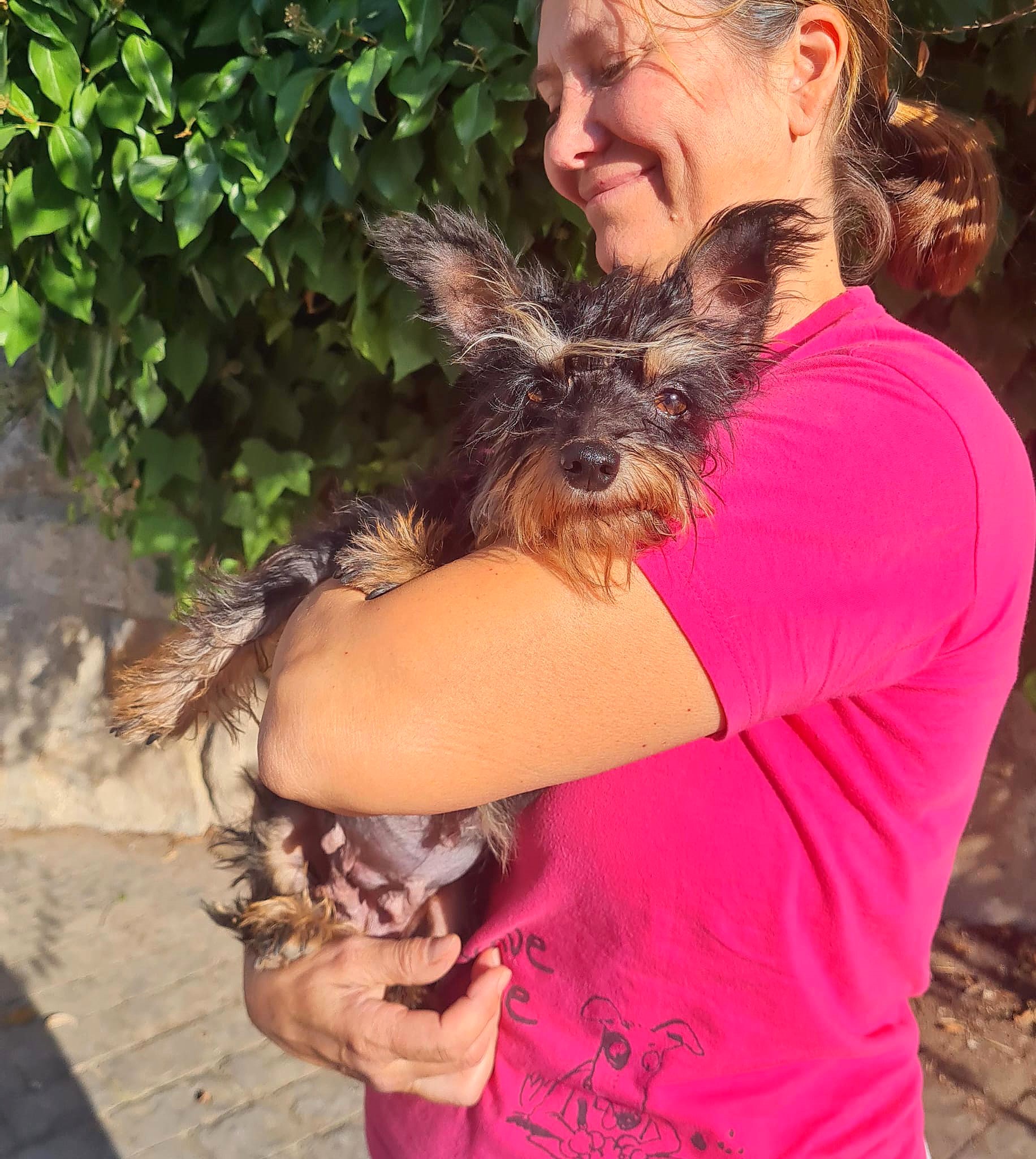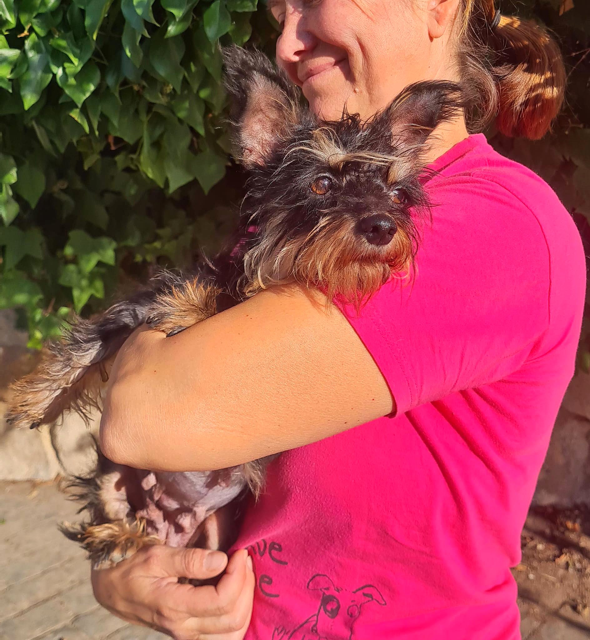 VERHALTEN: Zaria ist eine ganz liebe Hündin, wenn man sie erst einmal kennt, braucht aber etwas Zeit, um sich einzugewöhnen. Sie ist eine sehr unterwürfige Hündin mit einer schweren Vergangenheit, die sie vergisst, sobald sie Vertrauen gefasst hat. Dann entdeckt man, was für ein kleiner Schatz sie ist: Sie will immer auf dem Schoß sitzen und ist so agil wie eine Katze. Sie liebt es, sich den Bauch kraulen zu lassen. Auch Fressen liebt sie über alles, und wenn es leckeres Futter ist, ist sie ganz verrückt danach.