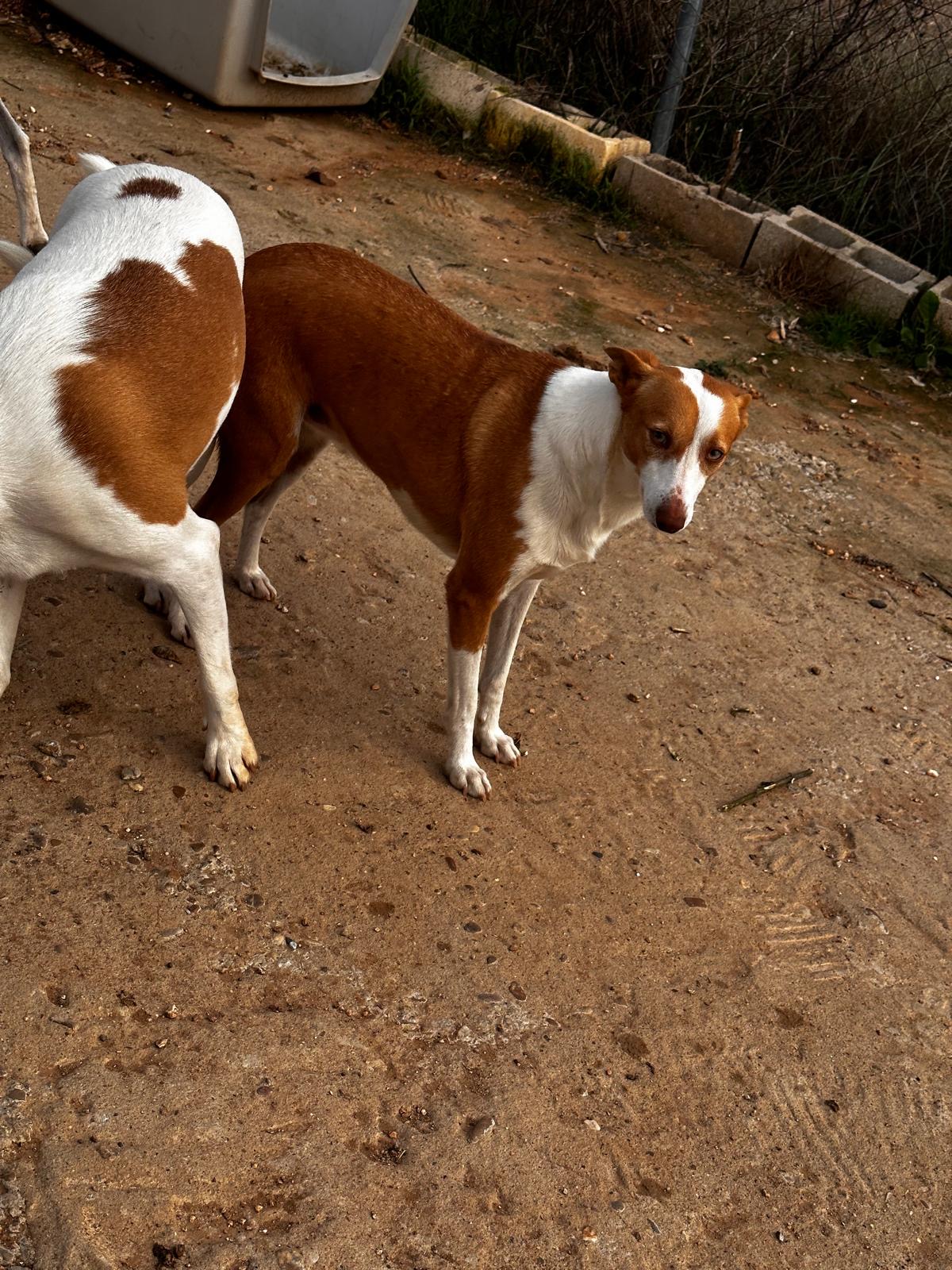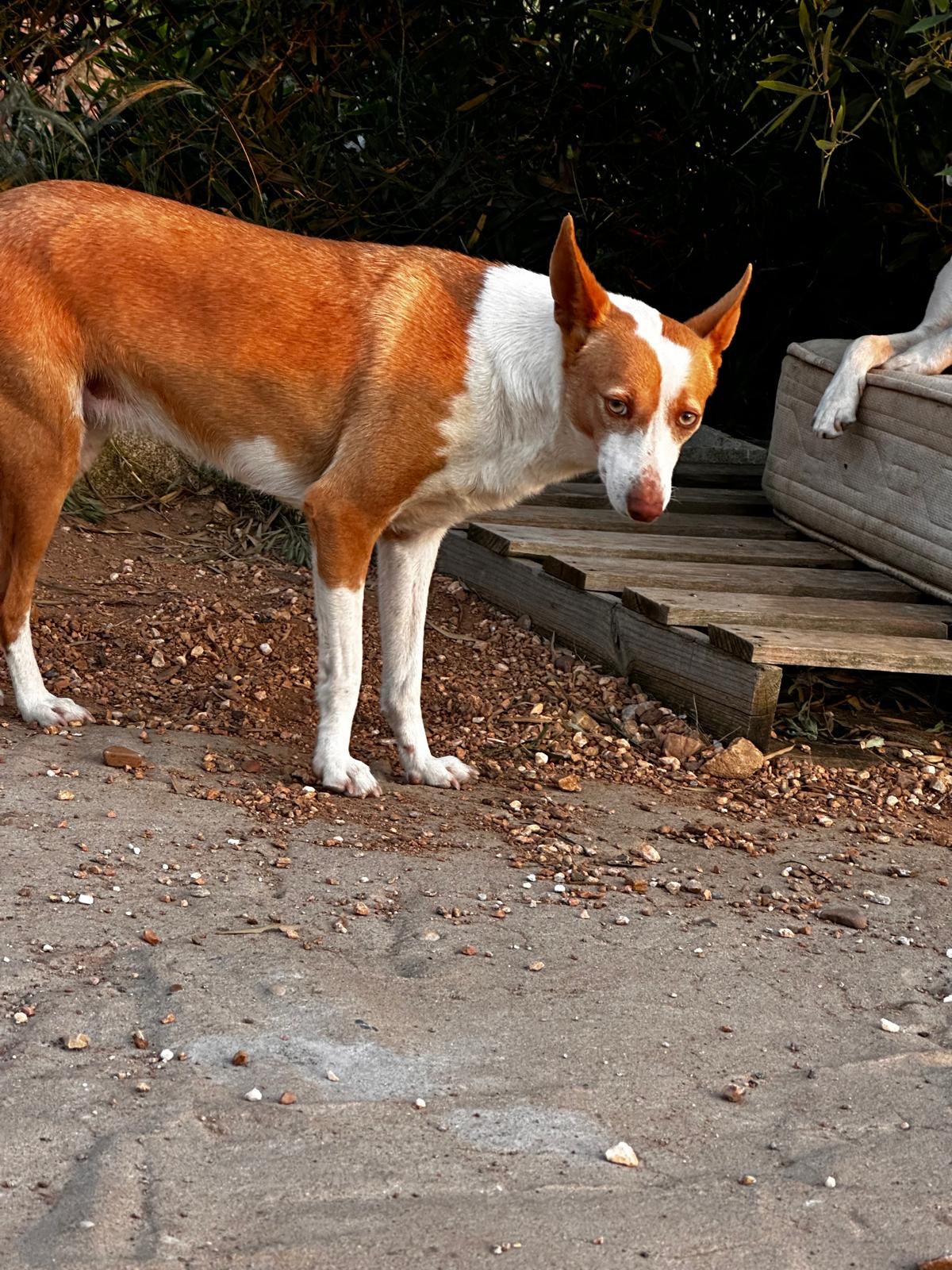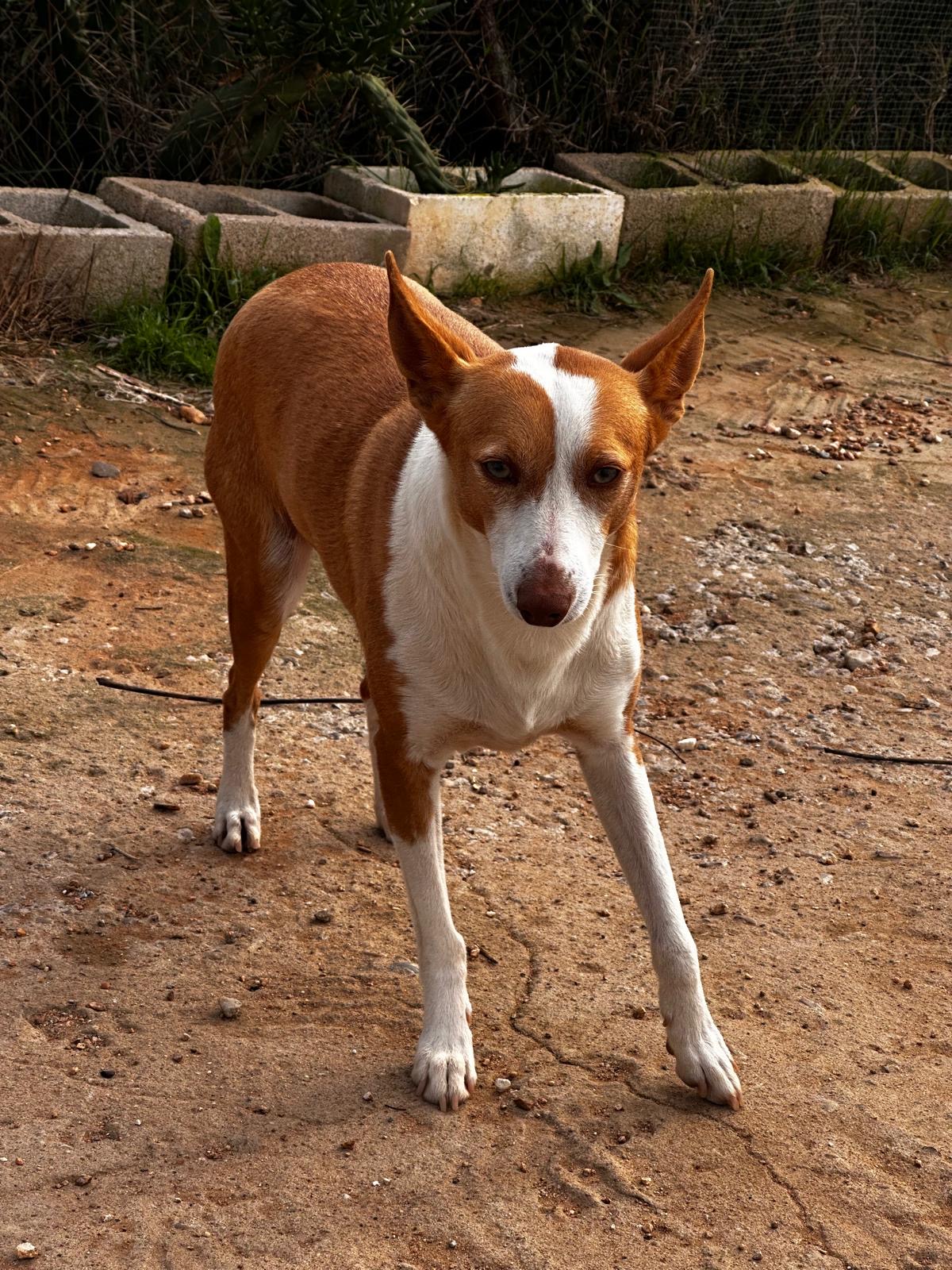 Chica ist eine zarte, anmutige Hündin, die in der Hundegruppe regelrecht aufblüht. Sie liebt den Kontakt zu Artgenossen, spielt fröhlich, zeigt sich mutig und manchmal auch ein wenig frech. Mit anderen Hunden fühlt sie sich sichtlich wohl und sicher.