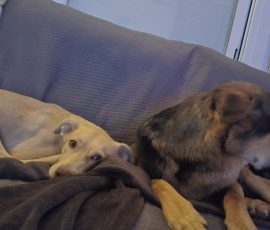 Nach einigen Tagen konnte die beige Schönheit sich bereits gut in das vorhandene Rudel integrieren, frei in der Wohnung bewegen und sich langsam an den steten Kontakt zu Menschen gewöhnen.