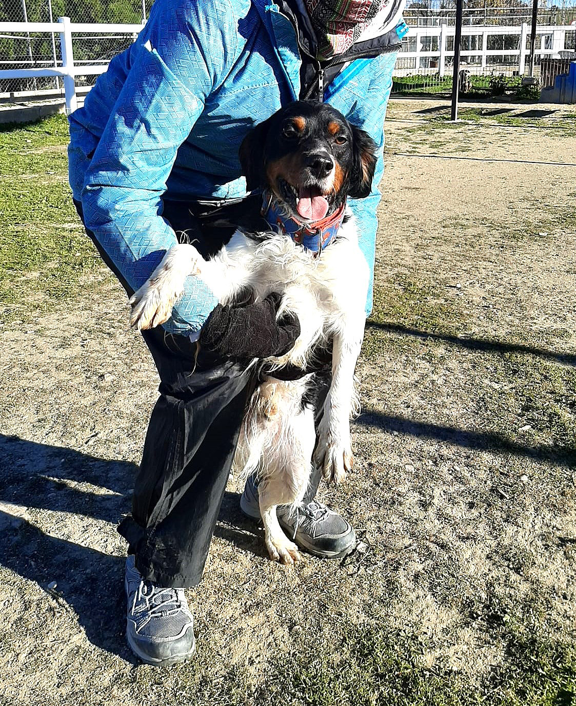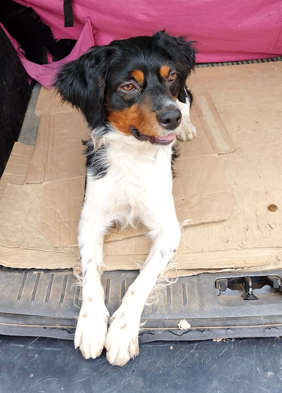 Sargento wurde bei Toledo zusammen mit einem Galgo-Rüden ohne Chip auf Feldern gefunden und über Adoptalo übernommen.