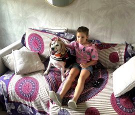 Im Haus zeigt er sich ruhig, stubenrein und vorbildlich erzogen – er kann auch allein bleiben, ohne etwas kaputtzumachen, und bellt nur selten.